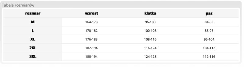 - trzy kieszenie na klatce piersiowej, w tym dwie na suwak i jedna na telefon, jedna wąska kieszonka na przybory np. długopis oraz dwie dolne